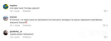 Під постом у TikTok багато колег погодилися з Діаною. Одні написали, що збори — це, передусім, місце для конкретних питань, а не для «корпоративного тимбілдингу». Інші зауважили, що самі зазнають «іспанського сорому» від нав'язаних ігор на педагогічних курсах.