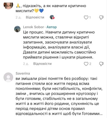" Результат нашого виховання ми бачимо вже та можемо все аналізувати, а те як сучасність пропонує нам виховувати дітей може в майбутньому нас розчарувати. Нехай я буду не права".