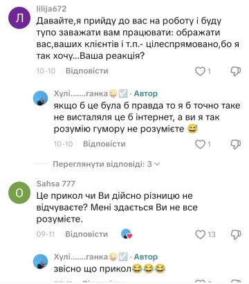 Авторка допису в коментарях закликала ставитися до таких відео з гумором, адже саме для цього вона його й створила, та зазначила, що більшість людей не розуміють жарти.