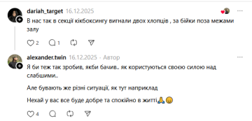 Эта история вызвала резонанс среди украинцев. Многие выражали восхищение силой духа мальчика и отмечали, что иногда такие умения действительно являются единственным возможным способом прекратить травлю. Некоторые даже делились собственным опытом и сожалели, что в детстве им не хватало подобных навыков, которые могли бы помочь справиться со сложными ситуациями в школе.